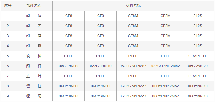 不銹鋼反應(yīng)釜放料閥零件材料: