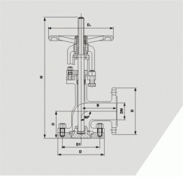 角式放料閥閥體為90度角,進出口法蘭大小相同。閥體內腔裝有耐沖刷、耐腐蝕的密封圈,在開啟閥門瞬間,可以保護閥體不被介質沖刷、腐蝕,并對密封圈子進行特種處理,使表面硬度達到HRC25~40。閥座密封面與閥瓣密封面均堆焊有司太立硬質合金,密封副采用線密封,保證密封,保證密封的可靠性,并可防止結疤。閥瓣斜面于閥座角形成線密封,閥瓣閥瓣啟閉時有手輪帶動銅螺母,螺母帶閥桿(上下運動有夾板定向,閥桿不會出現旋轉)向反應釜內伸。底部法蘭可拆卸,焊接到反應釜底部(注意:閥門必需是關必狀態拆卸法蘭)。