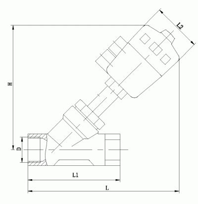 絲口氣動角座閥外形結構圖: