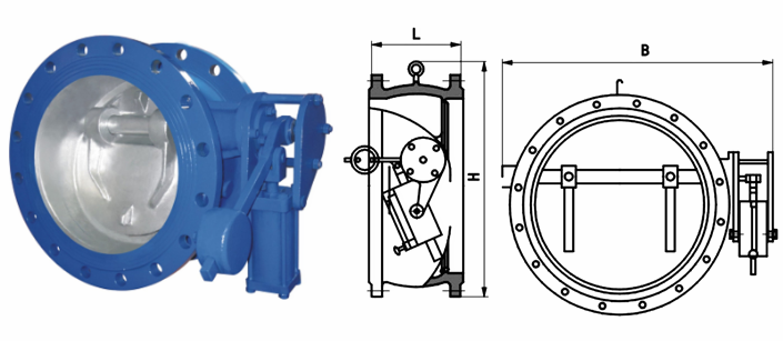 蝶式緩沖止回閥是一種主要由閥體、蝶板、重錘、緩沖裝置等零部件組成,安裝在水泵出口,靠介質壓力推動蝶板開啟,正常或非正常停泵時,靠蝶板自重及介質倒流壓力推動蝶板,先快速關閉大部分行程,然后利用緩沖裝置阻尼作用,慢速關閉剩余部分行程,防止破壞性水錘發生并參與控制水泵反向轉速的閥門。該閥蝶板組件分成快速和緩慢兩步關閉,達到了既防逆流又減弱水錘的作用,它的緩閉裝置裝在閥體外,以非管道介質作為阻尼介質,停泵時,先速閉75%~90%行程,后緩閉25%~10%行程,緩閉時間120s以內可調。