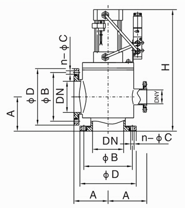 氣動(dòng)高真空擋板閥外形結(jié)構(gòu)圖: