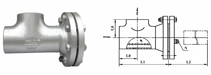 側流式T型過濾器外形結構圖: