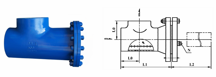 三通正折流T型過濾器根據實際工況需要可采用《SH/T 3411-1999石油化工泵用過濾器選用、檢驗及驗收》、《GB/T 14382-2008管道用三通過濾器》和《HG/T 21637-1991化工管道過濾器》等標準設計和制造。本產品是石油、化工、輕紡及電力行業中常用的一種管道附件,主要應用于上述行業的入口管道中流體介質的粗濾,以除掉其中的管垢。