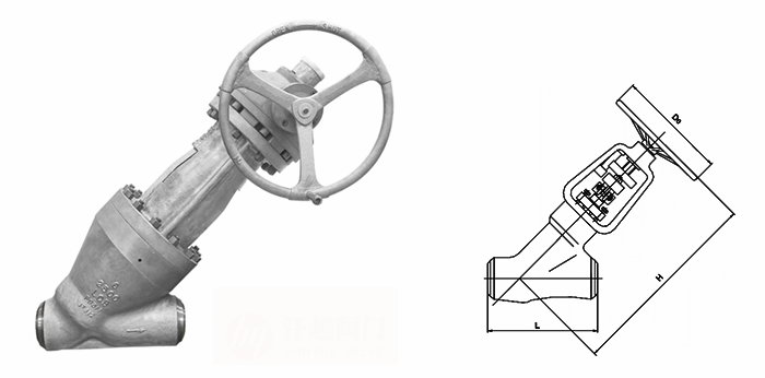 電站Y型截止閥外形結(jié)構(gòu)圖: