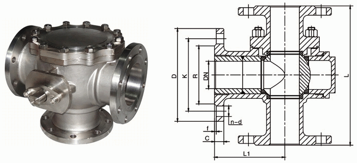 雙相鋼三通球閥外形結(jié)構(gòu)圖: