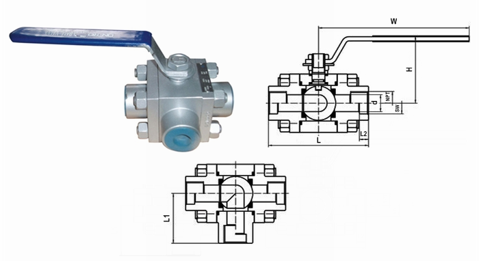 三通高壓球閥外形結(jié)構(gòu)圖: