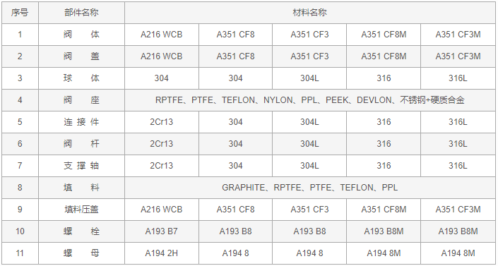 雙聯三通球閥零件材料: