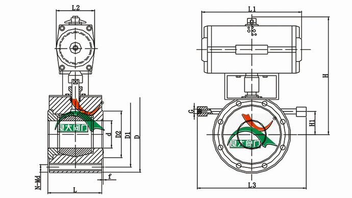| d | L | L1 | L2 | L3 | H | H1 | G | D | D1 | D2 | f | N-Md | |