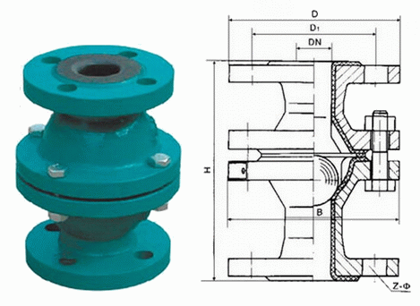 浮球式襯膠止回閥根據(jù)材質的不同,可以適用于各種介質的管路上。止回閥安裝在管路上,即成為這一完整管路的流體部件之一,其閥瓣啟閉過程就要受它所處系統(tǒng)瞬變流動狀態(tài)所影響;反過來,閥瓣的關閉特性又對流體流動狀態(tài)產生作用。浮球式襯膠止回閥在大多數(shù)實際使用中,定性地確定用于快速關閉,而在止回閥關閉的瞬間,介質方向是流動的,隨著閥瓣的關閉,介質從大倒流速度迅速降至零,而壓力則迅速升高,即產生可能對管路系統(tǒng)有破壞作用的“水錘”現(xiàn)象。對于多臺泵并聯(lián)適用的高壓管路系統(tǒng),止回閥的水錘問題更加突出。浮球式襯膠止回閥是自動工作的,在一個方向流動的流體壓力作用下,閥瓣打開;流體反方向流動時,由流體壓力和閥瓣的自重合閥瓣作用于閥座,從而切斷流動。浮球式襯膠止回閥外形結構圖: