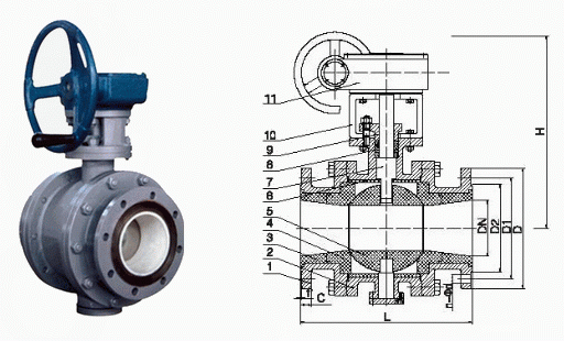 固定式耐磨陶瓷球閥外形結(jié)構(gòu)圖: