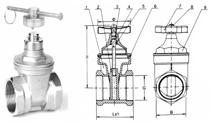 不銹鋼絲扣磁性加密閘閥外形結(jié)構(gòu)圖: