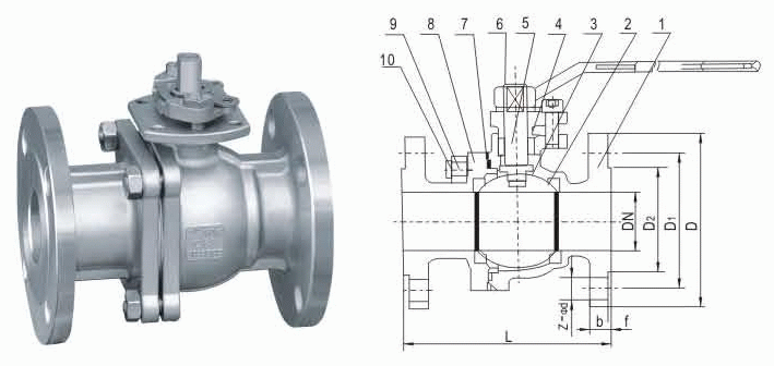 高平臺德標球閥外形結(jié)構(gòu)圖: