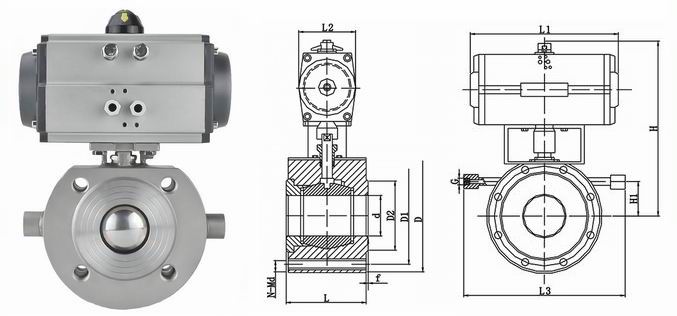氣動對夾式保溫球閥外形結(jié)構(gòu)圖: