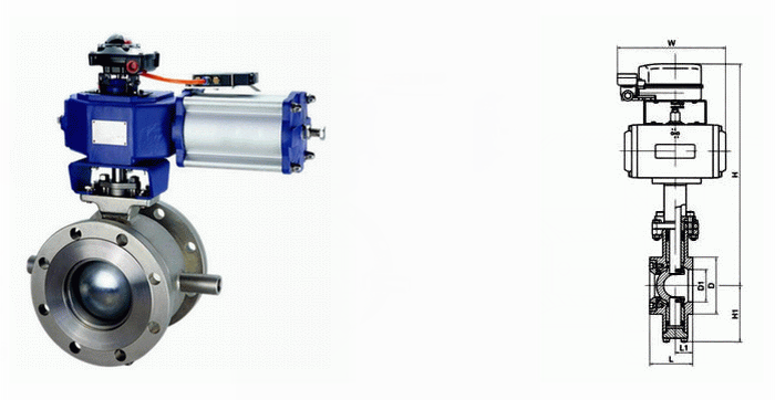氣動保溫V型球閥外形結構圖: