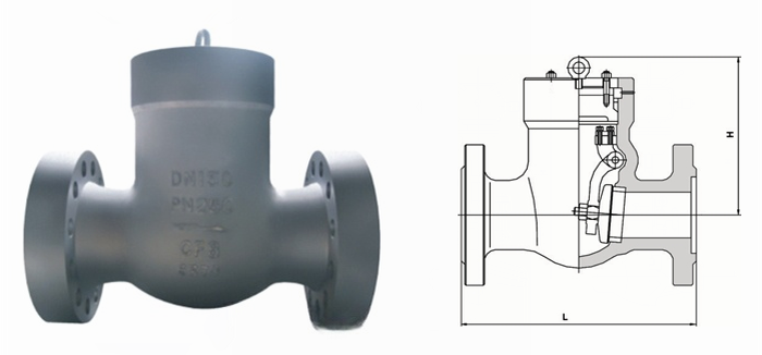 高壓止回閥是一種由閥體、閥座、閥瓣、搖桿、密封環(huán)及閥蓋等零件組成的閥瓣通過(guò)搖桿繞體腔內(nèi)閥軸作旋轉(zhuǎn)運(yùn)動(dòng)的高溫高壓自密封式止回閥,其一般應(yīng)用于火力發(fā)電廠高溫高壓介質(zhì)及流速和壓力較平穩(wěn)的大口徑管道系統(tǒng)中。該閥依靠介質(zhì)的流動(dòng)開(kāi)關(guān)閥瓣,使介質(zhì)單方向流動(dòng),防止介質(zhì)倒流,閥瓣在介質(zhì)流動(dòng)推力的作用下旋轉(zhuǎn)開(kāi)啟,在沒(méi)有介質(zhì)流動(dòng)的情況下,閥瓣通常緊靠閥座形成密封,本產(chǎn)品啟閉速度快,壓力高,口徑大,介質(zhì)流通順利,流體阻力小。