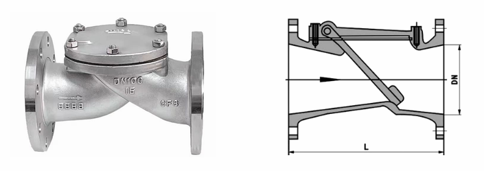 不銹鋼橡膠瓣止回閥外形結構圖: