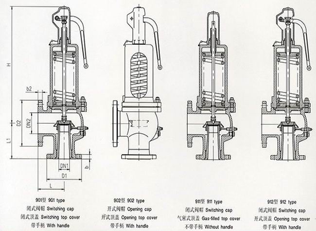 6、對空氣、60℃以上熱水或蒸汽等非危害介質,則應采用帶板手安全閥;