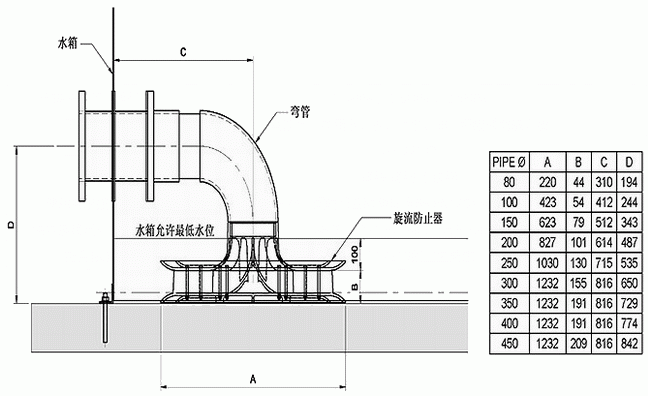 2、有效消除抽吸水過程中水箱(池)產生的旋流。