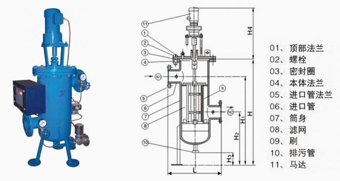 立式全自動清洗過濾器外形結(jié)構(gòu)圖: