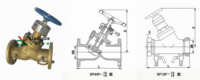 全銅數字鎖定平衡閥安裝示意和流量曲線圖: