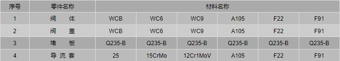 水壓試驗堵閥零件材料: