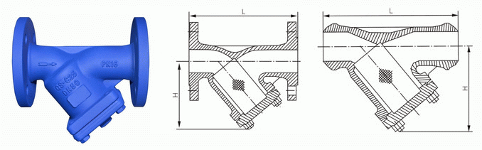 法蘭德標Y型過濾器外形結構圖: