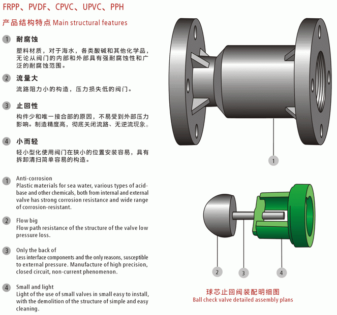 提示:本文中所有文字、數據、圖片均只適用于參考,需要了解更詳細的【球芯式塑料止回閥】參數、選型、價格等請聯系我們,我們將竭誠為您服務!