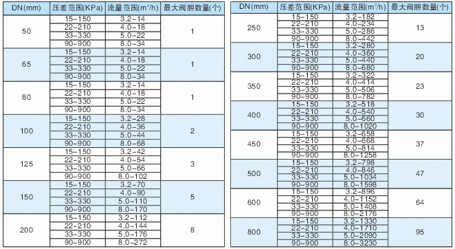 DG118動態流量平衡閥壓差與流量范圍: