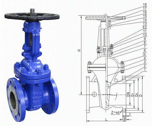 F5德標法蘭閘閥外形結構圖: