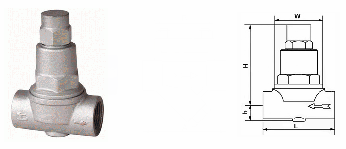 可調雙金屬片式蒸汽疏水閥外形結構圖: