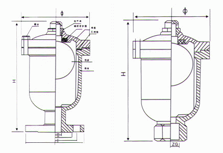 法蘭式單口排氣閥主要由閥體、閥門、上蓋、閥桿、浮球、排氣嘴等組成。當(dāng)需要排出管道內(nèi)的氣體時(shí),管道內(nèi)的空氣在水的壓強(qiáng)作用下進(jìn)入體腔內(nèi),并從排氣嘴排出,隨之管道內(nèi)的水充滿體腔內(nèi),使浮球在水的浮力作用下,向上移動(dòng)將排氣嘴堵塞,達(dá)到自行密封,管道在正常行中,水中的空氣在壓強(qiáng)的作用下,不斷排入排氣閥的體腔上部,迫使浮球下降,離開(kāi)原來(lái)密封位置,這時(shí)空氣又從排氣嘴排出,隨之,浮球又恢復(fù)到原來(lái)位置自密封,因此,排氣閥在正常工作中閥門始終是開(kāi)著的,浮球不斷重復(fù)上述動(dòng)作,空氣不斷排出。當(dāng)需要檢修或清掃體腔時(shí),應(yīng)將閥門關(guān)閉。單口排氣閥,順時(shí)針旋轉(zhuǎn)閥桿時(shí)為關(guān)閉。