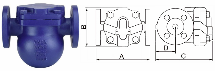 FT44H杠桿浮球式蒸汽疏水閥外形結構圖: