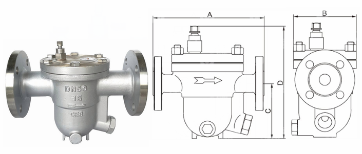不銹鋼蒸汽疏水閥外形結(jié)構(gòu)圖:
