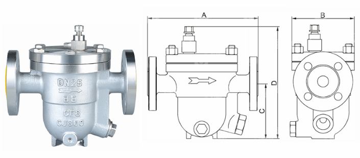 不銹鋼節能蒸汽疏水閥外形結構圖: