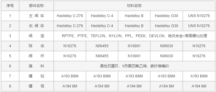 哈氏合金球閥零件材料: