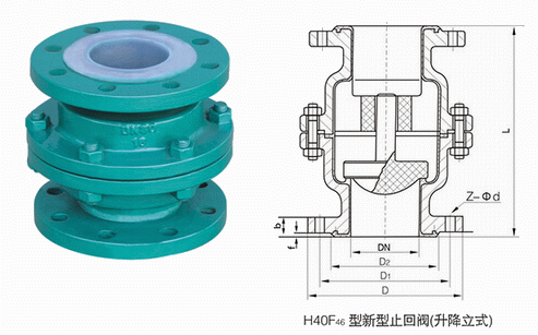 浮球式襯氟止回閥是一種依靠介質(zhì)本身的流動而自動啟閉閥瓣用來阻止介質(zhì)逆向流動的自動防腐閥門,又稱逆止閥或單向閥。閥體內(nèi)腔表面覆有可供選擇的各種氟塑料,具有強度高、耐腐蝕性能好的特點;適用于不同工作溫度和流體管路,防止各類管路或設(shè)備上的介質(zhì)逆流的單向啟閉。H40F46浮球式襯氟止回閥工作原理:是能自動阻止流體倒流的閥門。止回閥的閥瓣在流體壓力作用下開啟,流體從進口側(cè)流向出口側(cè)。當(dāng)進口側(cè)壓力低于出口側(cè)時,閥瓣在流體壓差、本身重力等因素作用下自動關(guān)閉以防止流體倒流。浮球式襯氟止回閥應(yīng)垂直安裝于管道中,安裝時注意介質(zhì)流動的方向應(yīng)與閥體所標(biāo)箭頭方向一致。