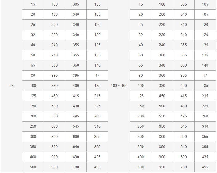 蒸汽減壓閥外形尺寸表:
