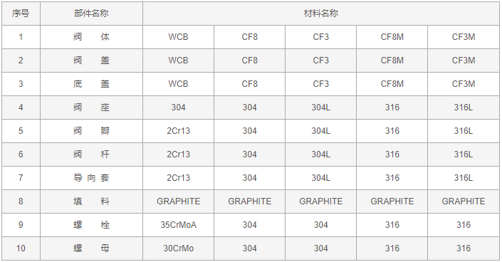 電動蒸汽減壓閥零件材料: