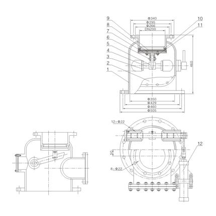 鐘罩式翻板進(jìn)料閥外形結(jié)構(gòu)圖: