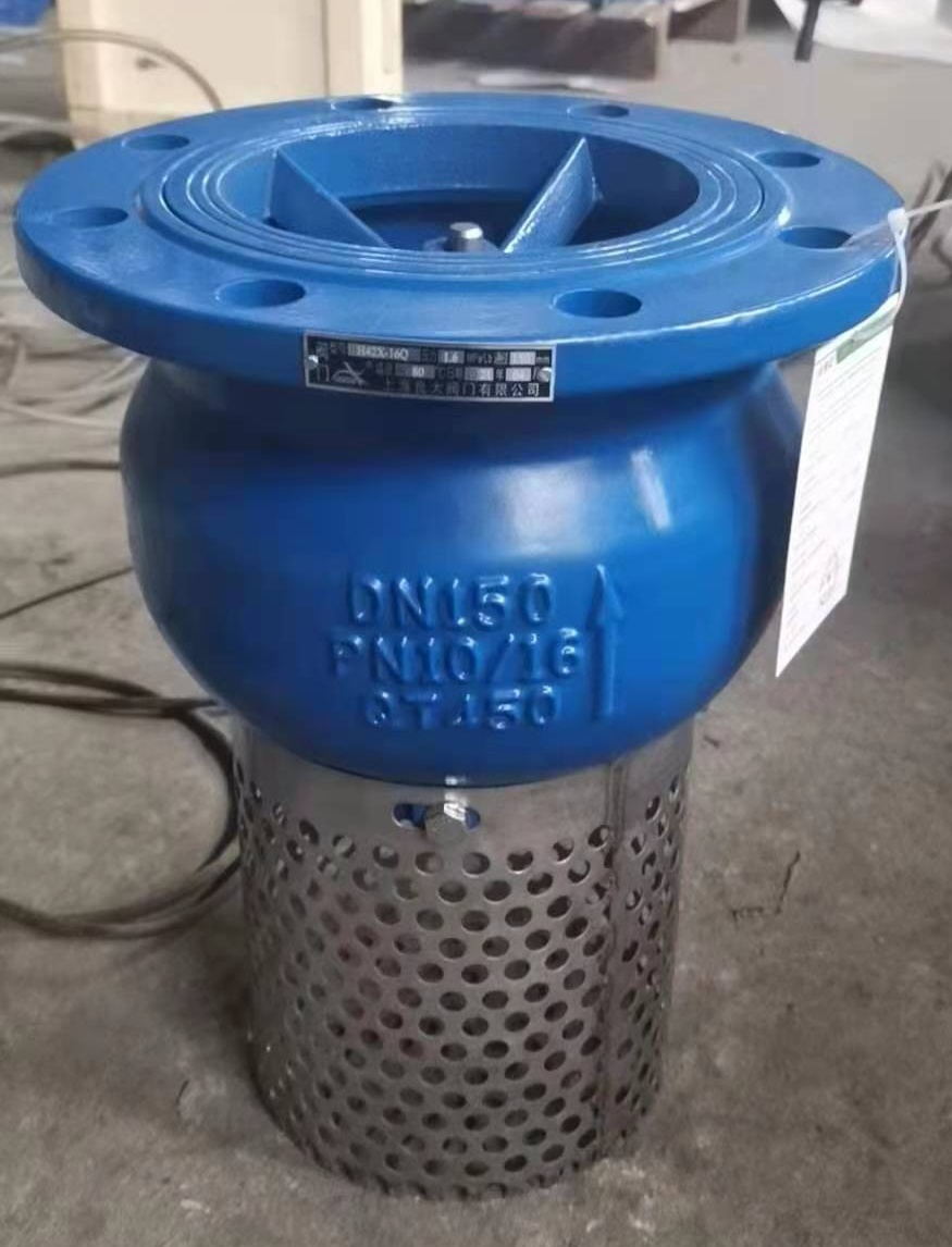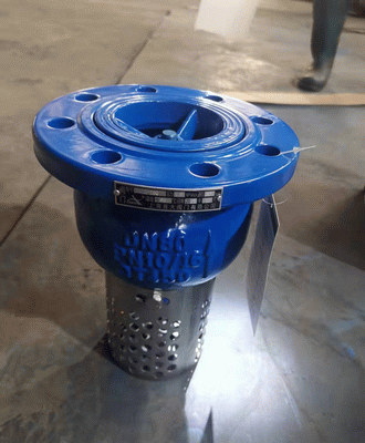 濾網(wǎng)式底閥是一種節(jié)約能源的閥,一般安裝在水泵水下吸管的底端限制水泵管內(nèi)液體返回水源,起著只進不出的功能。底閥由閥體,閥瓣,閥蓋,襯套,密封圈等零件組成,詳見下圖水源的水從閥蓋進入閥體。在流體的壓力作用下,閥瓣打開水,當示停后出口管內(nèi)的壓力將閥瓣迅速關閉,液體將不會倒回水源,起到了即暢通抽水又節(jié)約水能損失的作用。濾網(wǎng)式底閥產(chǎn)品實物圖: