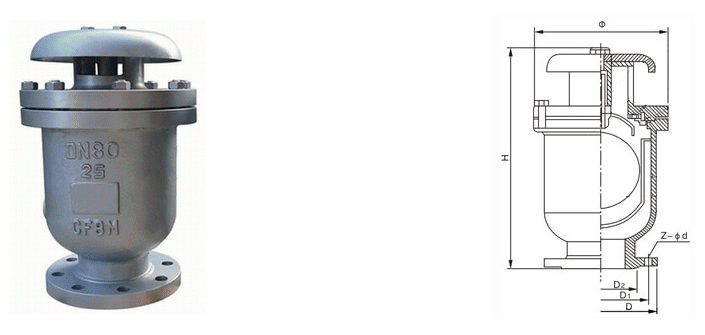 不銹鋼快速進(jìn)排氣閥外形結(jié)構(gòu)圖: