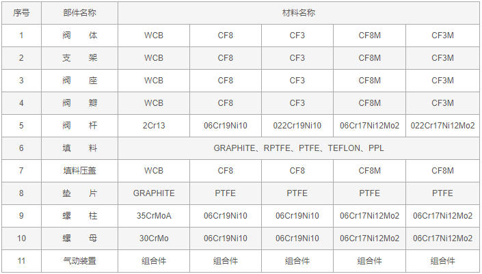反應釜氣動放料閥零件材料:
