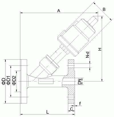 全不銹鋼法蘭氣動角座閥外形結構圖: