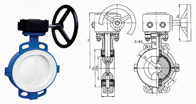 對夾式襯氟蝶閥工作原理: