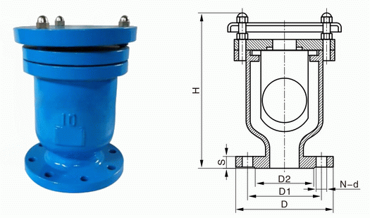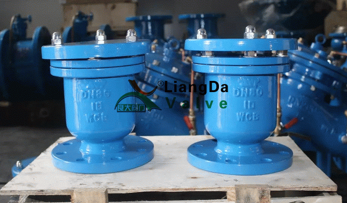 快速排氣閥適用于工業介質為水的管路上,作為快速排除管道內氣體的設備,以提高輸送水設備的效率和保護管道不致變形破裂,是管道的必備之設備。閥為圓桶狀式閥體,共內部主要有不銹鋼浮球及塞頭。本閥裝設于泵埔出口處或送配水管線中,用以大量排除管道中的集結之空氣,以增進水管及抽水機使用效率,且與管內一旦出現負壓時,此閥能迅速吸入空氣,以保管線因負壓所產生損壞。