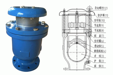 具有防水錘功能,即:保證在管線出現水柱拉斷時的負壓工況下,迅速大量排氣,以避免負壓的產生產;而當隨后出現的水柱彌合工況時,閥門有效地限制排氣,通過延緩排氣時間,在管道當中造成空氣囊似的彈性壓縮空間,阻止快速的水柱彌合可能造成的壓力升高,即水錘。
