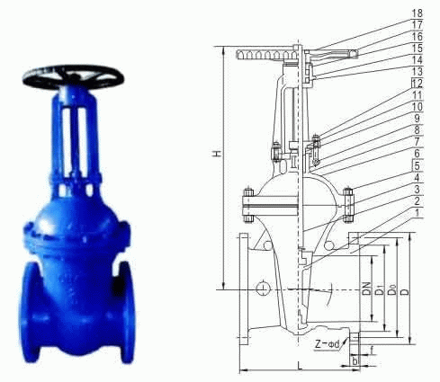 F5德標閘閥外形結構圖: