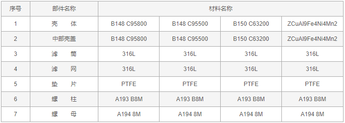 鎳鋁青銅Y型過濾器零件材料: