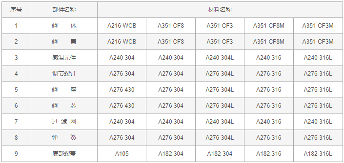 可調恒溫式蒸汽疏水閥主要由閥體、閥座、感溫元件、調節機構等零部件組成,其閥體內感溫元件中裝有由感溫劑、飽和劑、穩定劑和填充劑組成的常溫下為固態的感溫混合物,利用其對溫度的熱脹、冷縮及狀態變換使得閥門自動關閉或開啟,從而達到阻汽排水的目的。出廠時該閥有一定的開度,開始運行時,空氣和冷凝水可以快速排出,隨后閥腔內的溫度上升,使感溫元件內的感溫混合物受熱膨脹,進而推動閥芯下移,將閥流道關小,甚至關閉,當閥內溫度降低后,感溫元件收縮,使閥又漸漸打開,循環開始。