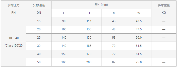 可調恒溫式蒸汽疏水閥外形尺寸表: